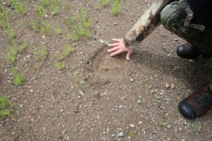 1) the reason you might want to carry a rifle while in the woods (grizzly track and the grizzly that made the track),